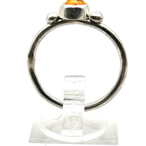An unsually deep colourd oval citrine (0.8mm) offset with 2 silver balls.